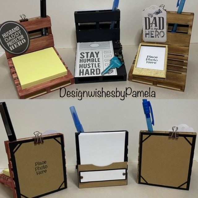 I designed and created this desk caddy using mini wood palettes I purchased from my local Dollar Tree Store!