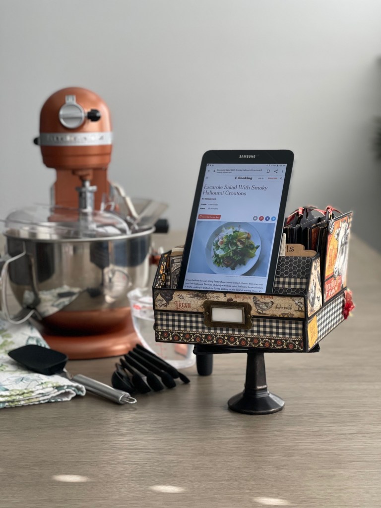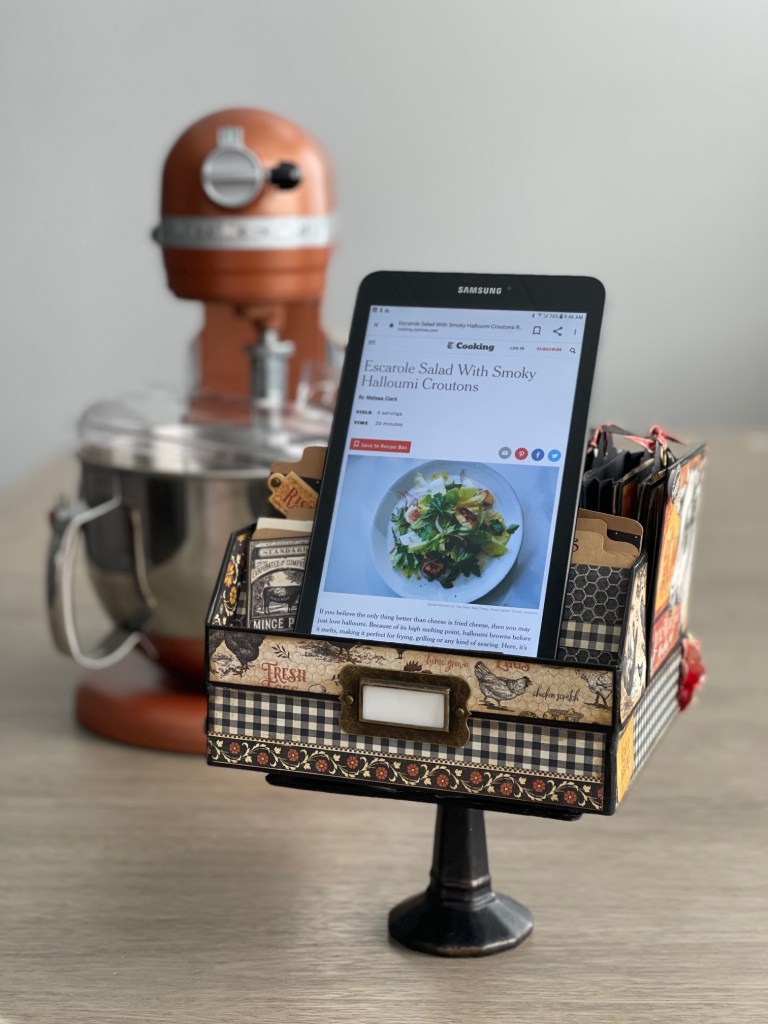 So, what if you don’t have any recipe cards, all of your recipes are online? Not to worry, this Rotating Recipe Center is strong and sturdy enough to hold a mini iPad or tablet! which makes it a convenient holder for your device.